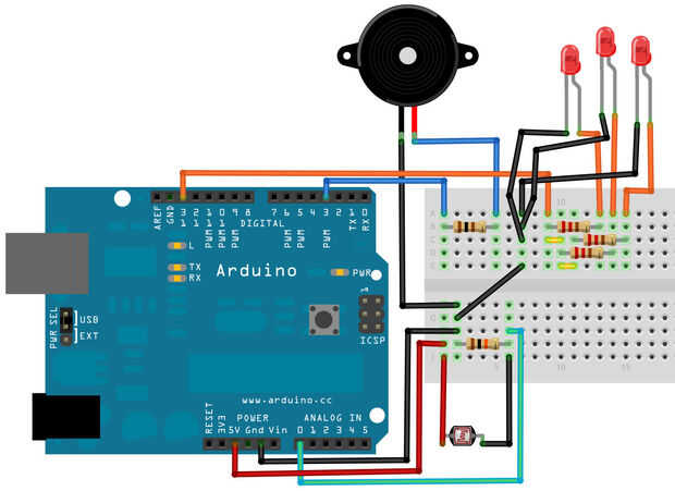 Este proyecto usos y la placa Arduino y la LDR Add-on Kit
