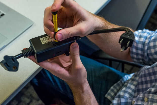 La cola de PowerSwitch para toma una señal de Arduino cuando es necesario se enciende y se apaga. Así que tenemos que conectarlo a Arduino. Para nuestro proyecto lo hicimos con la primera apertura de los puertos para "en +" y "-" de 3,0 mm Destornillador de plano. (No use el puerto de "tierra"). Luego había pegado un puente de alambre en cada puerto y apretado para sujetar el extremo del cable puente en su lugar. Estos cables de puente deben enchufarse en el Arduino. Según el código de Arduino, usamos pin 10 para controlar el PowerSwitch para cola II, por lo que el cable enchufado en la "en +" Puerto de PowerSwitch para cola II necesita para conectar al pin 10 y el cable desde el "en-" puerto debe conectar a uno de los pines de tierra de Arduino.