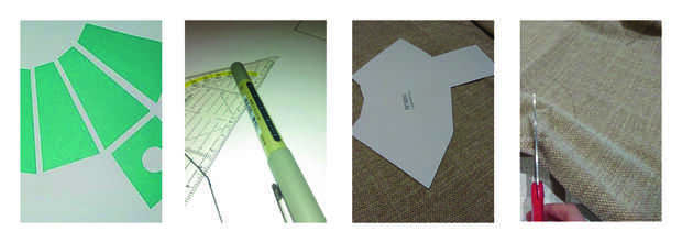 Coloque las cinco formas en un papel, en la posición correcta. Asegúrese de que hay un lugar pequeño (5 mm) entre cada parte, así que el doblez es posible. Seguir las formas con un marcador y córtelo hacia fuera, ahora tienes tu patrón.