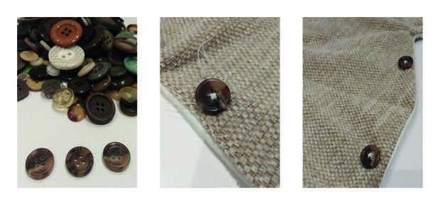 Coser tres botones en la posición de montaje para los lazos. Asegúrese de que no está demasiado flojos.