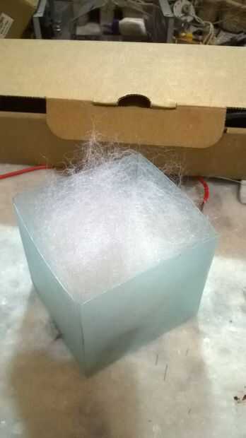 Introduzca algodón sintético en cantidad adecuada dentro del cubo. El propósito del algodón es difundir la luz intensa que sale del LED azul.