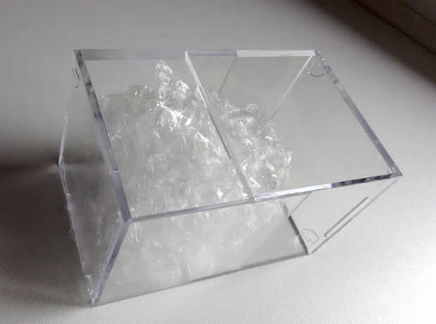 A atacar el interior y superficie exterior para retirar el acabado brillante. Desea que ese cubo realmente mate y "heladas" buscando. Necesidad de recurrir a cualquier spray decorativo para ese efecto, simplemente no frote esa superficie plástica como un loco.