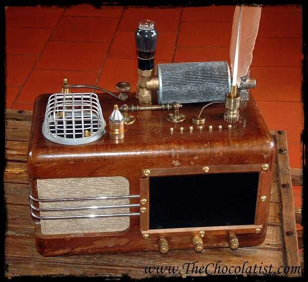 Hace unos meses que estaba limpiando de mi laboratorio de Steampunk y descubierto mucho de la vieja materia y restos de otros proyectos. Había una vivienda hermosa cuerpo de madera de una vieja radio de SABA, una gran cantidad de accesorios de latón, tornillos y así sucesivamente.