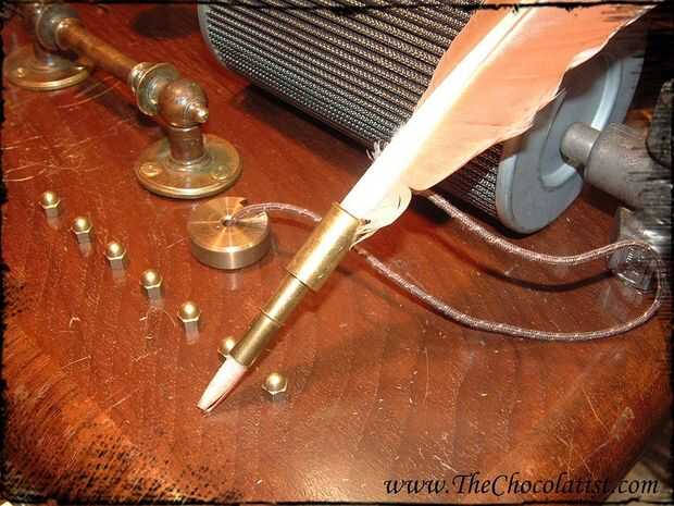 Para aparcar la pluma en el dispositivo que utiliza un accesorio con un buen engranaje de latón antiguo.