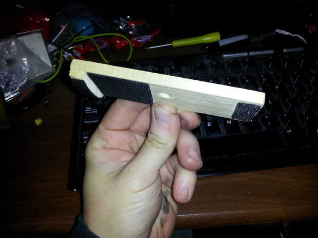 Supongo que la forma de la pieza de madera, junto con la colocación de la cinta de velcro y tirantes a variar ya depende del tamaño y la forma de la cámara.