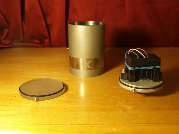 En la foto que se puede ver el soporte en la tapa de aluminio de la parte inferior con dos 6-32 orificios de roscado. Los sándwiches de aparato orificio contra la guarnición de m12 a través de la pared.