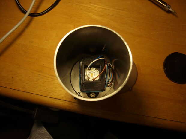 El soporte deja mucho espacio para soldar los cables de la conexión para el LED a través de pared.