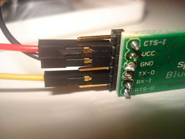 Una vez tienes las conexiones listas, colocar 3 1.5V AA baterías (equivale a 4, 5V) y hacer shure el BlueSmirf empieza a parpadear el LED rojo.