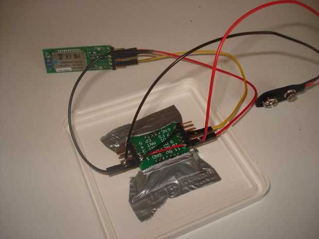 Nota: Mientras el BlueSmirf está marcado como 3.3V funciona bastante bien con 4, 5V. El ID12 que se presenta para 5V también funciona con 4.5V (tal vez con una gama ligeramente inferior).