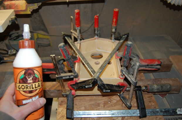 La caja entonces fue montada con pernos, abrazaderas y pegamento de madera gorila.