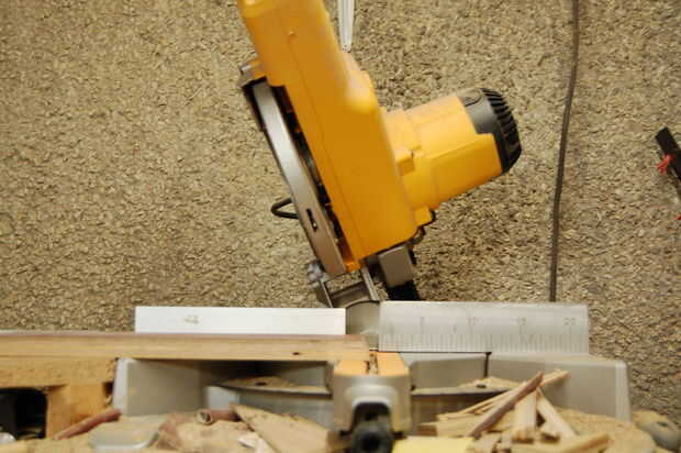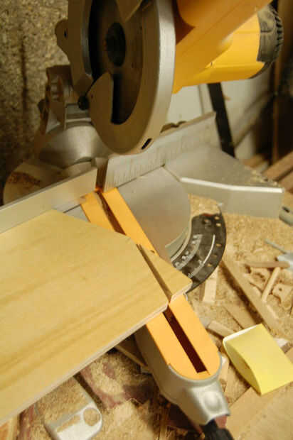 Las piezas laterales se cortan al tamaño y rebajes más cortan para las articulaciones en la parte inferior. Puse mi ingletadora en una inclinación de 22,5 grados para las juntas adecuadas en la parte superior de la caja.