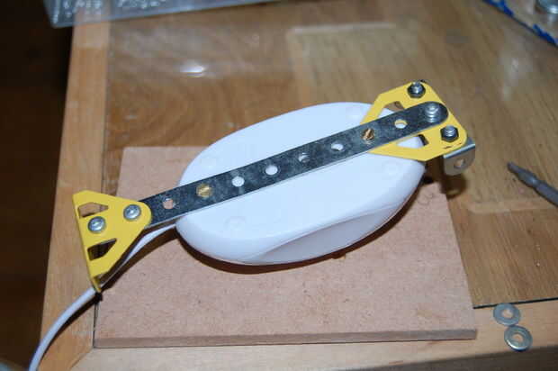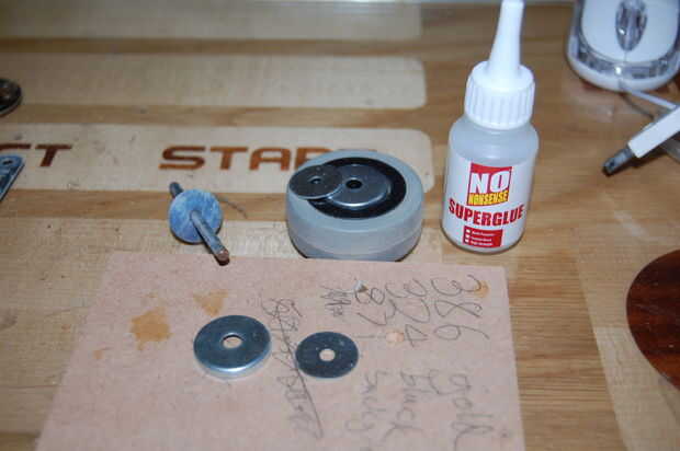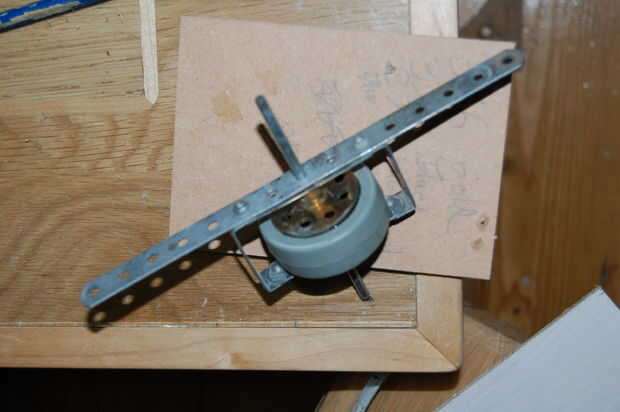 Un poco más Mecano atornillado en la parte posterior de un ratón USB y tenía un brazo pivotante, que con la ayuda de un pequeño muelle, la rueda del ratón apretado contra la rueda de goma.