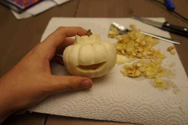 Tiempo para su creatividad brillo! Coge la calabaza talla kit y dar esa calabaza de alguna personalidad! Asegúrese de limpiar hacia fuera tanto de las semillas y tripas de calabaza como puedas.