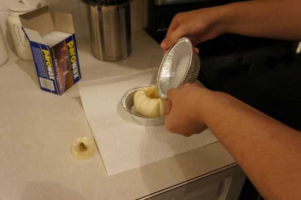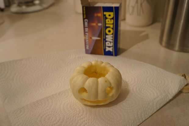 Para la calabaza que opté por ponerlo en una segunda lata de tarta y verter la cera fundida por encima de la cera, es mejor conseguir una capa uniforme sobre el interior y exterior. Este paso es realmente muy fácil. La cera sólo se debe mantener el agua caliente lo suficiente para dejar el entero 200g para derretir. Cuanto más tiempo se deja en la estufa después de derretir el más caliente se pondrá completamente y más posibilidades puede quemar.