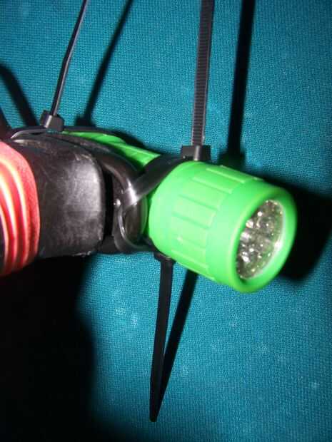 Utilicé 2 ataduras de cremallera en la parte frontal de la luz para mantenerlo recto y luego 1 y amarra la parte posterior final... esto tendrá lo realmente apretado.