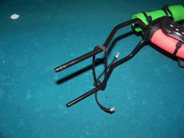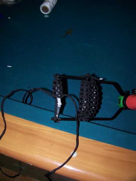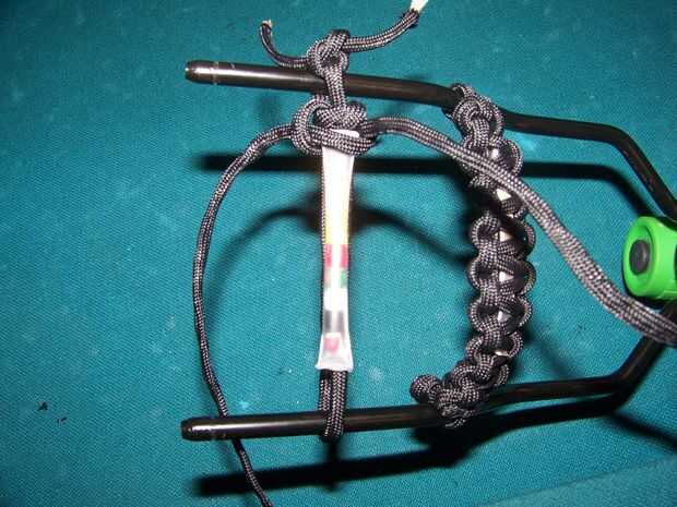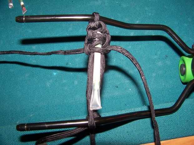 Para cable hace un lazo alrededor de las barras de muñeca luego teje el fuego, la pesca y el costurero en 3 nudos cobra haciendo la ortesis de muñeca en la parte trasera del tiro de Honda.