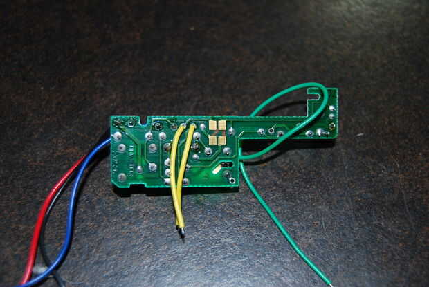 5. caliente pegue los cables del interruptor y circuito en su lugar, así como el soporte de la batería.