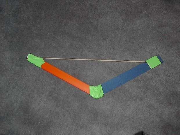 Cortar la goma elástica y cinta a cada lado para los extremos del arco. ¡ Felicidades! Ahora tienes un bonito arco! Ahora usted necesita unas flechas...