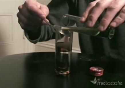 a continuación, cuidadosamente capa de la crema irlandesa sobre el amaretto, asegúrese de verter lentamente y deje la crema irlandesa por el interior del cristal.