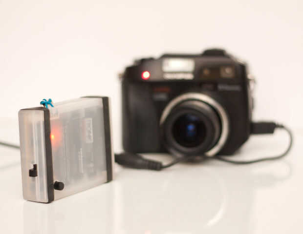 Entonces decidí diseñar este nuevo circuito, esta vez muy simple, que no necesita cualquier microcontrolador, está conectado a un IR remote (mina es para cámara de Olympus Camedia puente, pero puedes encontrar otros similares para casi cualquier compacta y réflex) e incluye un regulador de voltaje simple sólo para abastecer el mando a distancia IR. Cámara digital necesita su propia fuente de alimentación (o batería, pero debe ser muy potente para un lapso de tiempo). Así nació la TIRR!