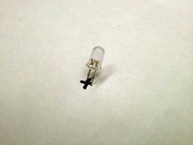 3. Presione el LED en el papel, recuerda girar todos los LEDs a la misma dirección - las piernas más largas dirección dentro o enfrente.