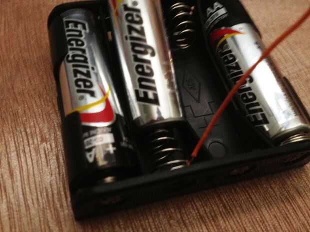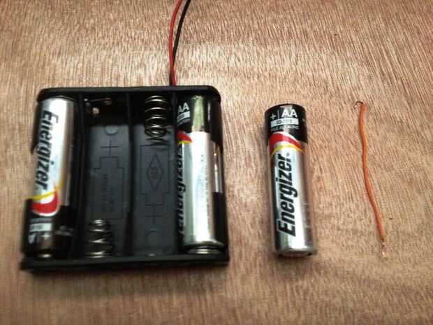 2. cortar un alambre a una longitud ligeramente más grande que una batería.