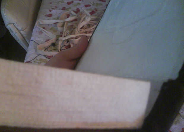 El tendedero es una marca barata que compré para cubrir cables de una lámpara vintage estaba reparando. El exterior es de cordón trenzado como usted esperaría, pero el interior, por otra parte, es una cinta de 2 pulgadas de tela plegada en sí mismo. Extrayendo cuidadosamente el paño desde el centro, tenía 10 pies de una gasa cinta (que también parece mucho papel) medida del borde exterior de la bandeja a los lados ver y añadir 4 pulgadas para anclarla en la tapa. Aplique el pegamento generosamente al exterior de la bandeja y poner la gasa alrededor del perímetro. pegamento en el interior borde del libro en ambos lados. Usted puede dejar cierta holgura en el lado donde el agujero es para que la tela se moverá fácilmente fuera del camino cuando quiere conectar el netbook
