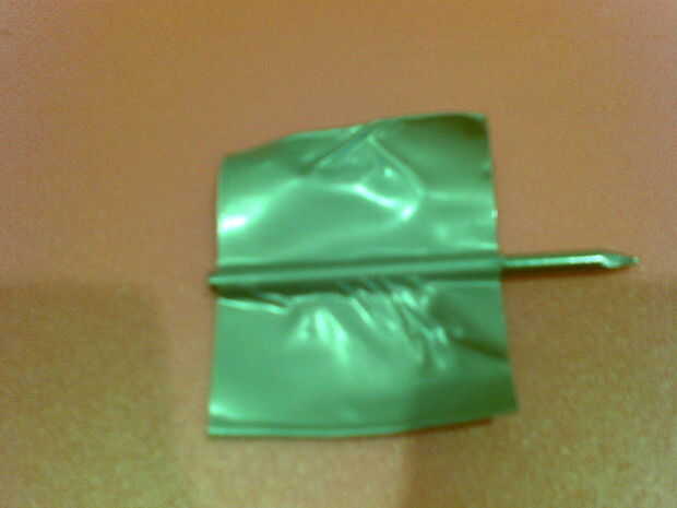 Ahora iban a tener en la cinta con la cinta adhesiva. El fletches para este tornillo son diferentes de una tienda estándar comprada perno ya que hay sólo dos aletas para un clip puede mantenerlo en su lugar ("Qué clip?" se pregunta, no he publicado la ballesta estoy hablando todavía). Envuelva una capa de cinta adhesiva en la uña y luego tirar de ella, hacer un lazo, luego sello, repita en el otro lado ("WHAT THE HELL" preguntar, entonces basta con mirar la imagen de Dios malditos. Finalmente, corte la cinta a fletch como apariencia, también si crees que su cinta no es que espesor o no se siente lo suficientemente gruesa, otra capa de la cinta.