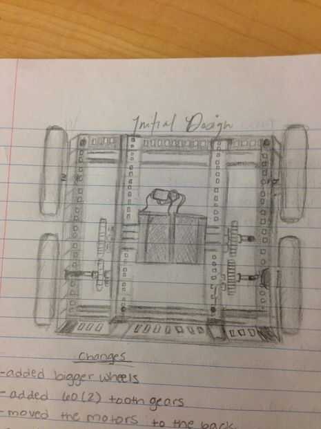 -Decidimos tomar 2 de los engranajes de diente 4 36 el robot había y los cámbielos por engranajes de diente 2 60 (2 en ambos lados). Hemos hecho el cambio porque creíamos que engranajes más grandes ayudarían el robot Tire más peso aunque disminuiría la velocidad.