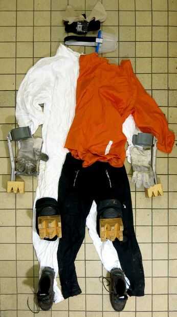 - una conjunto a prueba de agua (puede encontrarse segunda mano gratis si pides para desecharlos en ciencia universidades o laboratorios) que no debe cubrir con ropa ajustada textiles sueltas estarán abierto para morder y lagrimeo. No es una mala idea para sellar las muñecas un tobillos con cinta adhesiva.