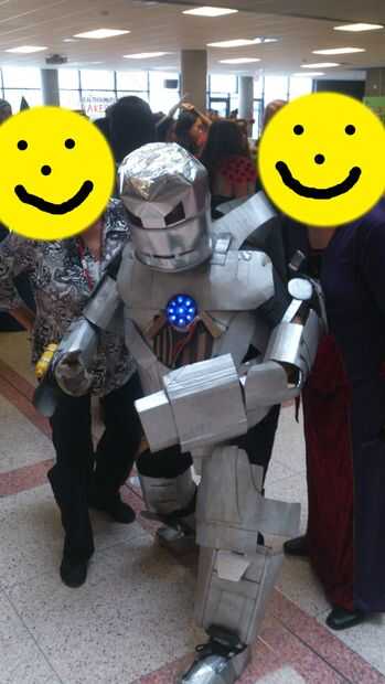 Ahora este año para Halloween, mi grupo de amigos insiste en vestirse como los personajes de Mario kart y carrera alrededor de la escuela en nuestro cartón kart... pero eso no ocurrió. Luego 3 noches antes, mi otro amigo me preguntó si yo podría mostrarle el reactor de arco que hice pasado Halloween y comentó que quería construir toda la serie de la marca. Bromeando, le dije que quería construir la primera marca y desgaste de Halloween de este año. Pero él contestó con un "no wayyyyyy" no tienes suficiente tiempo para acabarlo! Pero dije ILL DO IT! Entonces esa noche fui a casa y tiene en el equipo para verificación cómo se veía la marca 1. Había un montón de capas de metal... como mucho. Entonces pensé en utilizar cartón para sustituir el metal que no tengo. Cartón es fácil de trabajar; fácil plegado y pegamento junto. Este traje entero me tomó 3 días y 2 noches de muuuuu muuuuu para terminar (por mucho tiempo es decir 10 horas cada noche para diseñar, medir, cortar, pintar y montar la cosa entera)