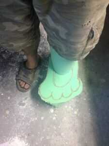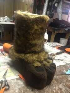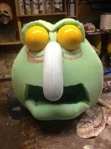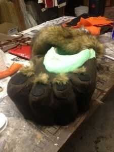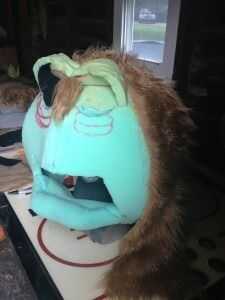 A continuación comenzamos a añadir el detalle, una vez que se cortó la boca que quería hacer los ojos! No es tan fácil, colocación no iba bien así que cambié de engranajes. Empecé con espuma de HD de 5 pulgadas y basado en unos pies! Mientras yo estaba tratando con los pies también hice algunas piernas, sino hasta sobre la rodilla. La espuma apoyará el fieltro y la piel. También de moda el noes para ayudarme con la colocación del ojo. Construí el noes de Junta de 2 HD azul. También tuve que construir hacia fuera el labio inferior que sobresale más allá de la boca. También trabajé en la plataforma dentro de la cabeza para que la cabeza no acaba flop alrededor. Tomé algunas de la rejilla de plástico restante y hecho un halo para ir alrededor de la cabeza, poner algún relleno en él para la comodidad y había pegado a un superior a él. Con el halo hecho decidió ejecutar algunas correas de rejilla para mantener el halo en su lugar, también corté un poco de la espuma de lado, para permitir que la cabeza mejor y colocación del hombro. Con la cabeza pudiendo estar bien ajustado y el noes completa pasó a los ojos. Compré un par de globos de plástico de la tienda de artesanía fue difícil para mí decidir tamaño así que compré 2 más uno grande y uno más pequeño. Para este proyecto decidí usar los más grandes. Marqué un par lugares diferentes y a partir en la espuma. Una vez que llegué donde quería comencé a trabajar en los zócalos del ojo para dar Sweetums ese aspecto torvo. También trabajé en boca Sweetums, sé que se supone que debe ser muy floja mandíbula y tener algo serio menores pero decidimos hacer le traje un poco más y un poco menos marioneta así que tiró la quijada hacia la cara un poco, dando al usuario el uso de ambas manos para el traje. Hemos construido la quijada un poco y planea colocar material negro en el área de la boca, también estamos planeando lo que es muy floja para dar Sweetums la ilusión de ser muy floja mandíbula. Aquí están unas fotos que nos encontramos con el traje. Bueno eso es todo hasta que llega la piel, gracias por seguirnos a lo largo. No hay un montón de comentarios para ir con estos pasos. Salió y compró algunos fieltro y empecé con Sweetums pie y la pierna a utilizar para pegar la piel y fieltro. Sweetums tiene un pelaje más oscuro y más corto en sus pies y piernas y 2 diferentes colores de fieltro. Primero tomé el pie y la pierna construí y usa las tijeras para formar un poco mejor, una vez que terminó empecé a pegar por el marrón oscuro por la base del pie. Terminada esta tarea tediosa yo corte negro para las uñas de los pies y encolar así. Con el fieltro en su lugar que empecé a pegar primero la piel a la pierna, ya que era un cilindro es una pieza de fácil práctica. Tengo bastante rápido así que me puse de pie, esto no fue tan fácil pero me di cuenta, cortar una pieza de gran tamaño y puso sobre el footI entonces formó hacia fuera un poco y comenzó a pegar desde la cima hasta el fondo. Una vez que la piel reunió el fieltro corte todo el camino alrededor. Próximo trabajo de la piel que abordó fue la cabeza, esto no fue fácil pero fue muy divertido. Empecé con la misma forma de pelota de playa y cortar el pelo en 4 trozos, en lugar de recortar la forma en la parte superior y la parte inferior cortar recto la parte inferior de la piel para permitir que la piel cuelgue y darle ese balanceo suelto ver. Comencé con un panel y se movió de mi camino alrededor de la cabeza cosiendo los bordes hasta llegar a los paneles del frente 2 de la cabeza. No quiero que haya una costura en medio de la cara, así que salí al frente como una sola pieza grande. Con la piel que cubre todo excepto los paneles de frente 2 de la cara me volví mi atención al añadir la piel del puente de los noes y adición de fieltro negro en los zócalos del ojo para cubrir la espuma que también cubrí el labio y los noes de espuma en fieltro naranja. No es la más fácil de trabajar con el fieltro, toma algo de práctica y un poco de tiempo para ir, sin embargo se extiende muy bien y las costuras muy bien. Finalmente trató con la pieza frontal de la cubierta. Corte más tamaño pegado en y cortado el pelo para adaptarse. Luego necesitaba agregar el material en el área de la boca para que no se puede ver al hombre detrás de la máscara y tuve que hacer los dientes. Había esculpido hacia fuera un diente rápido y había moldeado con uretano y vierte 2 copias de la resina. Mientras se seca la resina he puesto un tornillo en la resina por lo que pude lo atribuyo al labio inferior.