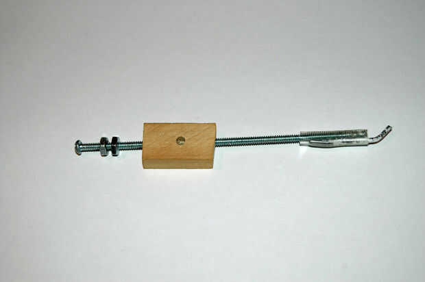muy generoso con epoxy para asegurarse de que permanecen en. Todo el peso de la goma y el trebuchet se centra en estas tuercas dos t, por lo que deben ser estructuralmente. Después apliqué el epoxi, usé las abrazaderas de muelle pequeño para mantener las tuercas en su lugar. A continuación, inserte el extremo del gancho en la sección de 1 pulgada de la tubería. Atornille el tornillo de 2,75 pulgadas en el otro extremo de la tubería. He encontrado que usando un taladro inalámbrico para hacer esto hizo mucho más fácil. El ensamble de gancho y tornillo (de ahora en adelante llamaré esto el brazo) ahora debe parecerse a la segunda foto. Ahora atornille bien el brazo un poco menos mitad del camino en uno de los agujeros más pequeños en el bloque de madera. Poner dos tuercas en los tornillos de 1.5 pulgadas, luego el tornillo un poco menos medio en el orificio enfrente del brazo. Ahora debe tener algo similar al objeto en la tercera foto. Entonces, atornille los acopladores en las barras de 3.5 pulgadas por lo que todavía se puede ver a través de los orificios perforados. Tornillo de dos de estos en las tuercas de la tee que sobresale por la parte superior de la caja. Finalmente, alimentar el tornillo por el primer acoplador, entonces 5/8 pulgadas pedazo de tubo de goma, luego el brazo con el bloque de madera, entonces la otra pieza de tubería de 5/8 de pulgada, entonces el otro acoplador. Coloque una tuerca en el extremo para que no se desintegraría y una banda elástica alrededor de la parte inferior del contenedor y luego entre las dos tuercas del gancho en el brazo. Ahora tienes el trebuchet terminado (foto 4). Cuando usted desmonta esto, no tienes que reducir en piezas individuales: usted puede guardar algunas cosas juntos, como cabe en el envase.