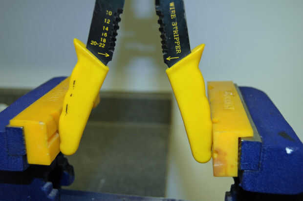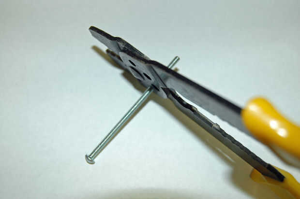 A continuación, introduzca la maneta en un vicio (como se muestra en la tercera imagen) y comienza a sujeción manija en el suelo, cortando así el tornillo de la barra.