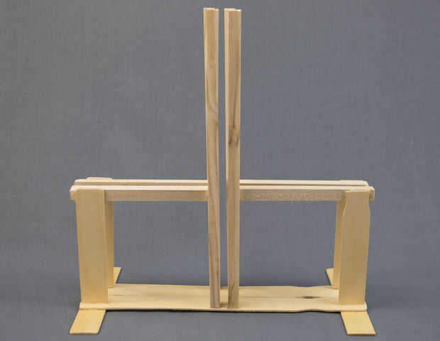 1. Uso de 5"(12,5 cm) pedazos de agitador de pintura y cuatro 6" (15 cm) cuadrado pasador piezas para formar los rieles de deslizamiento.