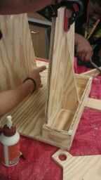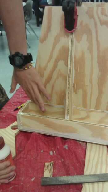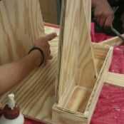 we used gorrila brand wood glue and it was really strong. Inicio pegado de la base. Asegúrese de que darle un tiempo para secar antes de que pegue otras piezas. Todas las piezas deben venir juntos bastante fácilmente. no tengas miedo a la arena las piezas para que encajen mejor.