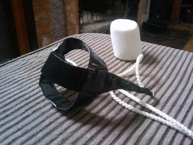 Análisis de las imágenes cuadro por cuadro reveló que las melcochas eran a veces rodar fuera de la eslinga parcialmente por el movimiento de latigazo. Varios otros diseños de Honda fueron probados y que se basaba en eslinga de bola de golf de L.D. Vance rindió la distancia máxima de 52,5 pies aunque degradados más usamos finalmente al punto de no disparar el proyectil. Esto fue debido a que todos de la fuerza de la eslinga estirar y torcer la cinta del conducto utilizada para la construcción. La naturaleza pegajosa de malvaviscos erosionadas ciertamente no ayuda tampoco.