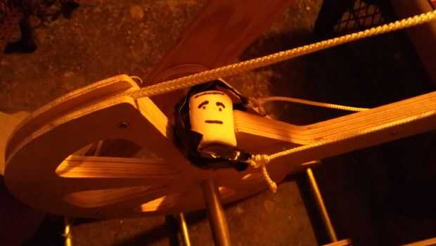 Una vez que se completó el proceso de construcción, era momento de intentar disparar nuestro artilugio. Tomó un poco de ensayo y error con los ángulos del dedo diferentes pero finalmente, tenemos que tirar hacia delante unos 15 pies. Esto fue con un colgante improvisada masa hecha de un 1-2-3 bloque y arena 2 libras bolsa de peso de tobillo. Estaba oscuro cuando que llegamos a fuego para que cada uno fue a su casa por la noche y nos volvió a reunir al día siguiente en un campo de juego de escuela primaria. En la mañana, pasé algún tiempo afinando el diseño y lanzaron tres malvaviscos encima en mis árboles vecinos a una alta velocidad.