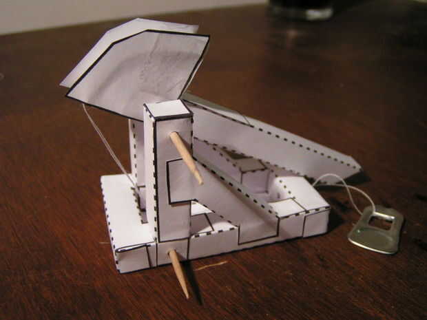 En lugar de utilizar contrapesos como las versiones más últimas, decidí utilizar la energía del músculo y hacer un trebuchet de tracción.