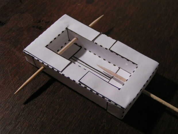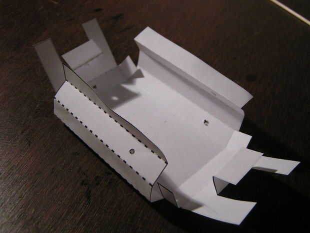 Cuando ha pegado a ambos lados, funciona en los extremos. El primer doblez para arriba parece dejar dos bits extras sobresale a los lados. Supone que estar allí - pegar en la parte exterior de los lados de la base. Como se dobla sobre la parte superior, pegamento al final abajo a los lados de la base.