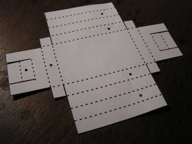 Después plegar los extremos dentro de la misma manera que los lados largos. Pegamento abajo y luego poner la base a un lado para secar.