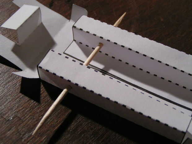 Dos aletas más pegamento a la parte superior de las vigas laterales.