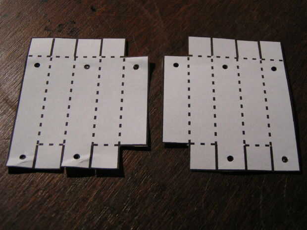 La aleta larga del pegamento y doblar la pieza en una viga de sección cuadrada. Asegúrese de que los tres agujeros de línea hacia arriba (usted debe han solo pegado un agujero sobre otro).