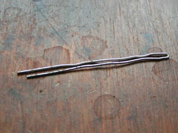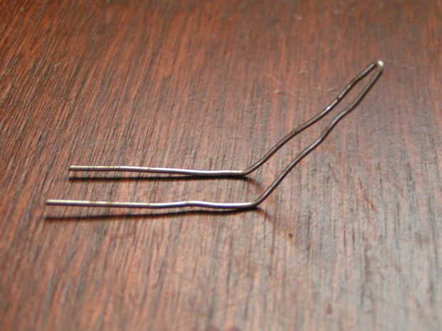 Para hacer el pin, enderece un clip y luego doblarla completamente por la mitad. Esto le da un agradable final liso que no se atoren a la cadena.