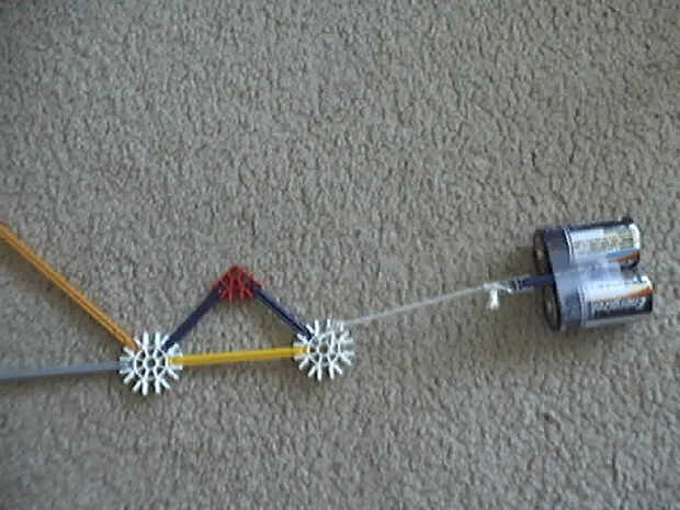 En primer lugar, tomar la primera cadena que se corta y ate al conector blanco en el lado corto del brazo.