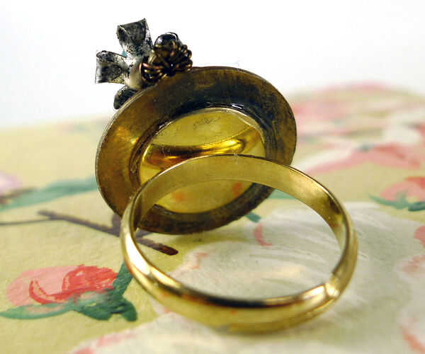 Coloque una pequeña gota de pegamento en el centro de la almohadilla de pegamento en la parte posterior del anillo. Presione firmemente en el centro de la parte posterior del encanto de la Oui. Dejar para secar durante 24 horas antes de usar.