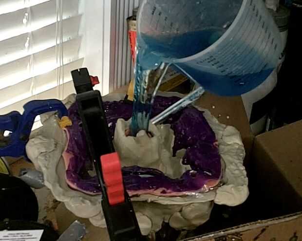Estaba de contento ya que mi otro material sólido demasiado rápido para mi gusto. Así que me tomé mi tiempo mi colorante y verter este trono. (yo usé un poquito de colorante de pista) Este es mi 1 º vierta así me alegro que cogí este blooper de oncamera para que pueda ver cómo rápidamente este material se solidifica y cómo mal las cosas pueden salir. Así que como ves la vida es mucho menos de 3 minutos