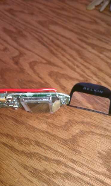 Tomando un corto, 2cm de longitud de alambre que tenía puesta alrededor fue capaz de aumentar notablemente la potencia de transmisión. Me senté en mi coche, sintonizada a una estación fuzzy que tenía un poco de algunos a través de la estación. He sintonizado el Belkin a la misma estación y comenzó a jugar música - muy borrosa, dentro y fuera de corte con la estación local. Cuando el inductor fue puenteado como se muestra en la última foto, todo podía oír era mi música y mucho más claro. Luego utilicé la misma pieza de 2cm de alambre y tocó en el extremo libre de la antena - esto también tenía el mismo efecto.