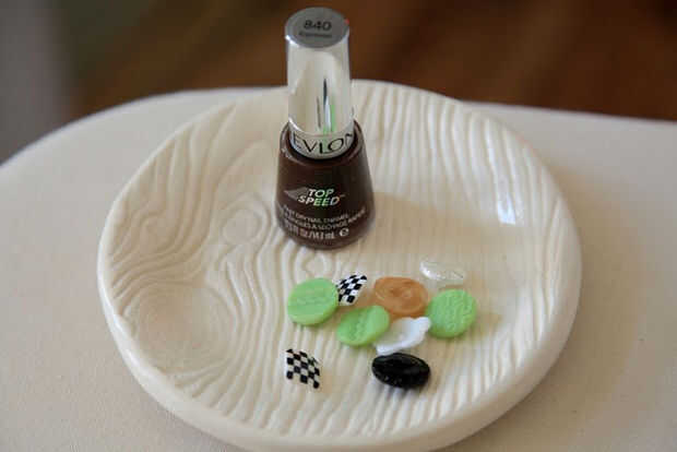 1) me buscó un esmalte para pintura mi botones, pero que esmalte Revlon Espresso 840 encontró la sombra perfecta para el chocolate. Cubre muy bien, y más mi botones solo necesitan una capa.