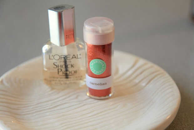 3) para la decoración usé una sombra roja de esmalte y el extremo de un palillo de dientes para pintar el trabajo de detalle. También he añadido algunos brillo rojo, muy fino en algunos de ellos. Añadir que algunos claros donde usted quiere el brillo del palillo y luego aplicar brillo de esmalte. Después de eso la capa se seca, añadir otra capa de clear para mantener esos destellos en su lugar!